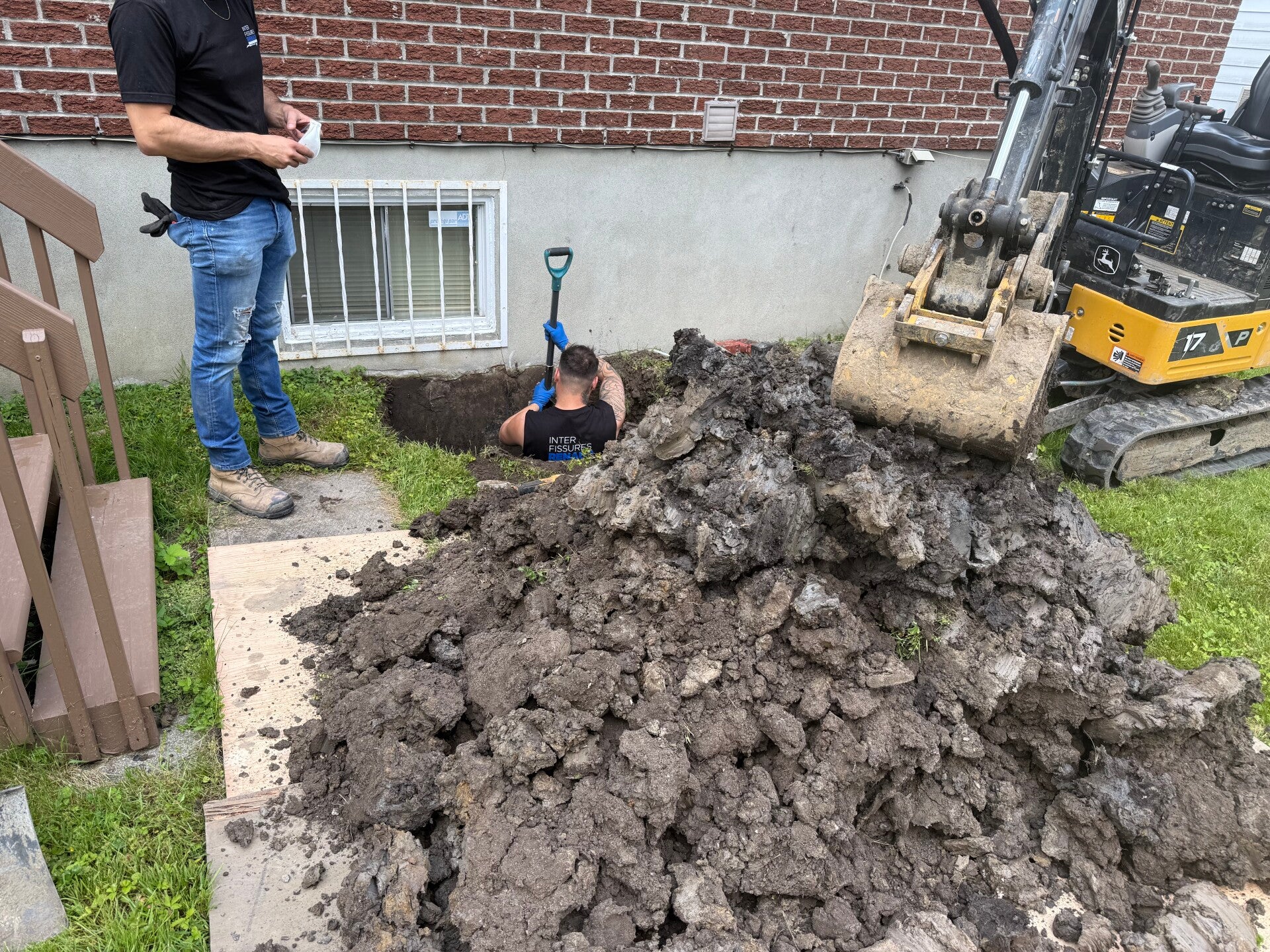 Nous procédons d’abord à l’excavation avec une machinerie adéquate jusqu’à la semelle de fondation, puis nettoyons et préparons la surface. La fissure est ensuite injectée sous pression avec une résine de polyuréthane ou d’époxy, puis scellée et protégée par une membrane de polyuréa pour une étanchéité complète et durable.